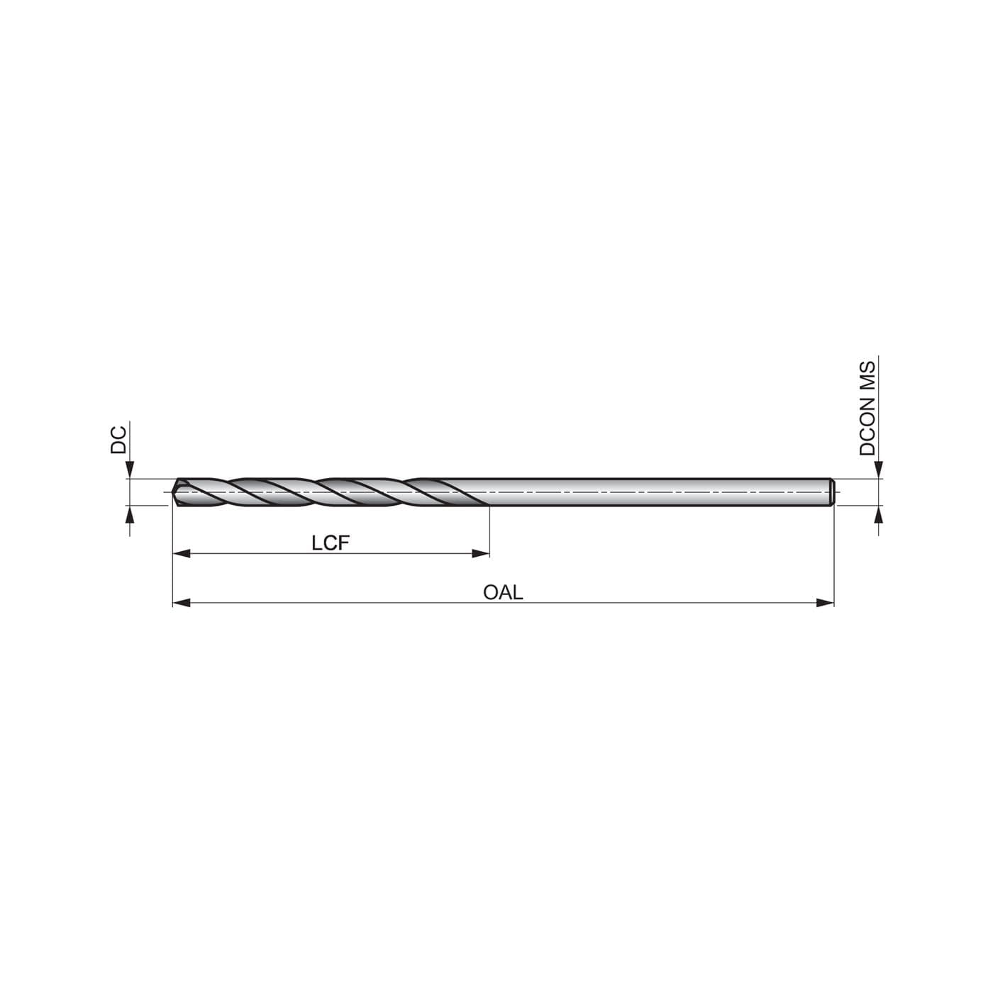 Aircraft extension-length drill with straight shank, NAS907 Type B standard with 135° heavy-duty split point, HSS with steam tempered finish for 4xD drilling without pecking in steel, stainless steel and cast iron.