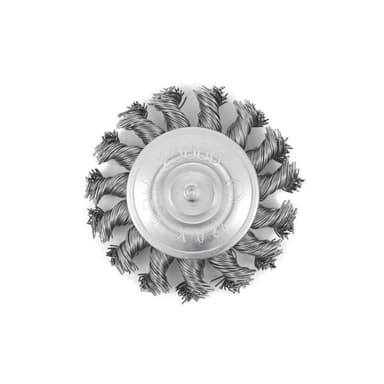 Brosse radiale montée sur tige à fils noués torsadés en acier inoxydable 3 po x 1/4 po