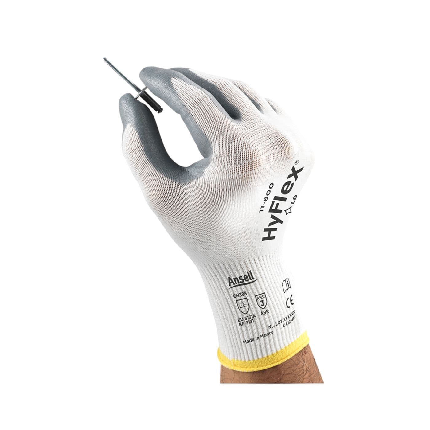 Gants industriels avec une respirabilité accrue de 30%, offrant un confort et une protection tout au long de la journée. L’enduction de mousse nitrile les rend exceptionnellement perméables à l’air, pour une utilisation quotidienne moins irritante. La doublure optimisée ZONZMC Comfort Fit Technology soulage les tensions, pour des gants EPI au confort inégalé. Ces gants HyFlexMD sont également certifiés Dermatest® pour le respect de la peau. En outre, ils bénéficient d’un processus de lavage exclusif qui élimine les impuretés. Au-delà du confort, l’enduction en mousse nitrile des gants de travail industriels HyflexMD 11-800 offre une meilleure adhérence dans des conditions sèches et légèrement huileuses. Ils présentent également une résistance à l’abrasion conforme à la norme ANSI/EN, pour une usure durable.