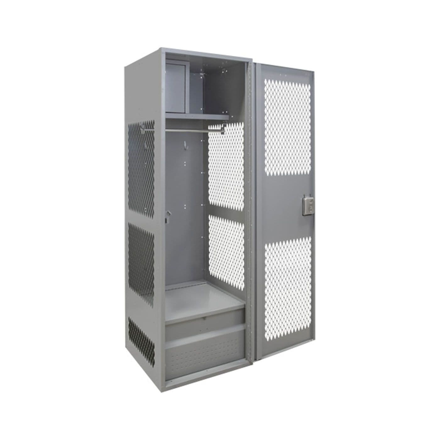 Casier pour équipement avec porte, 24 po x 24 po x 72 po, acier, gris, démonté