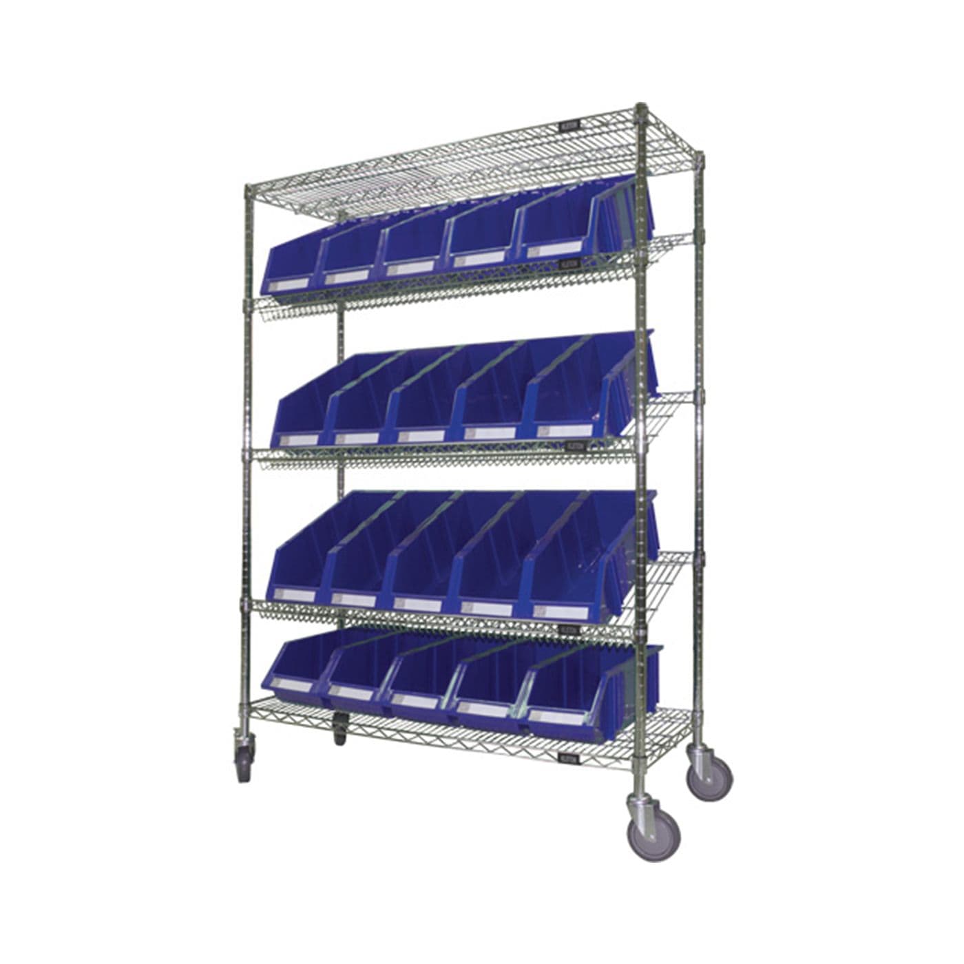 Chariot en treillis métallique à tablettes inclinées avec bacs, 48 po x 18 po x 69 po