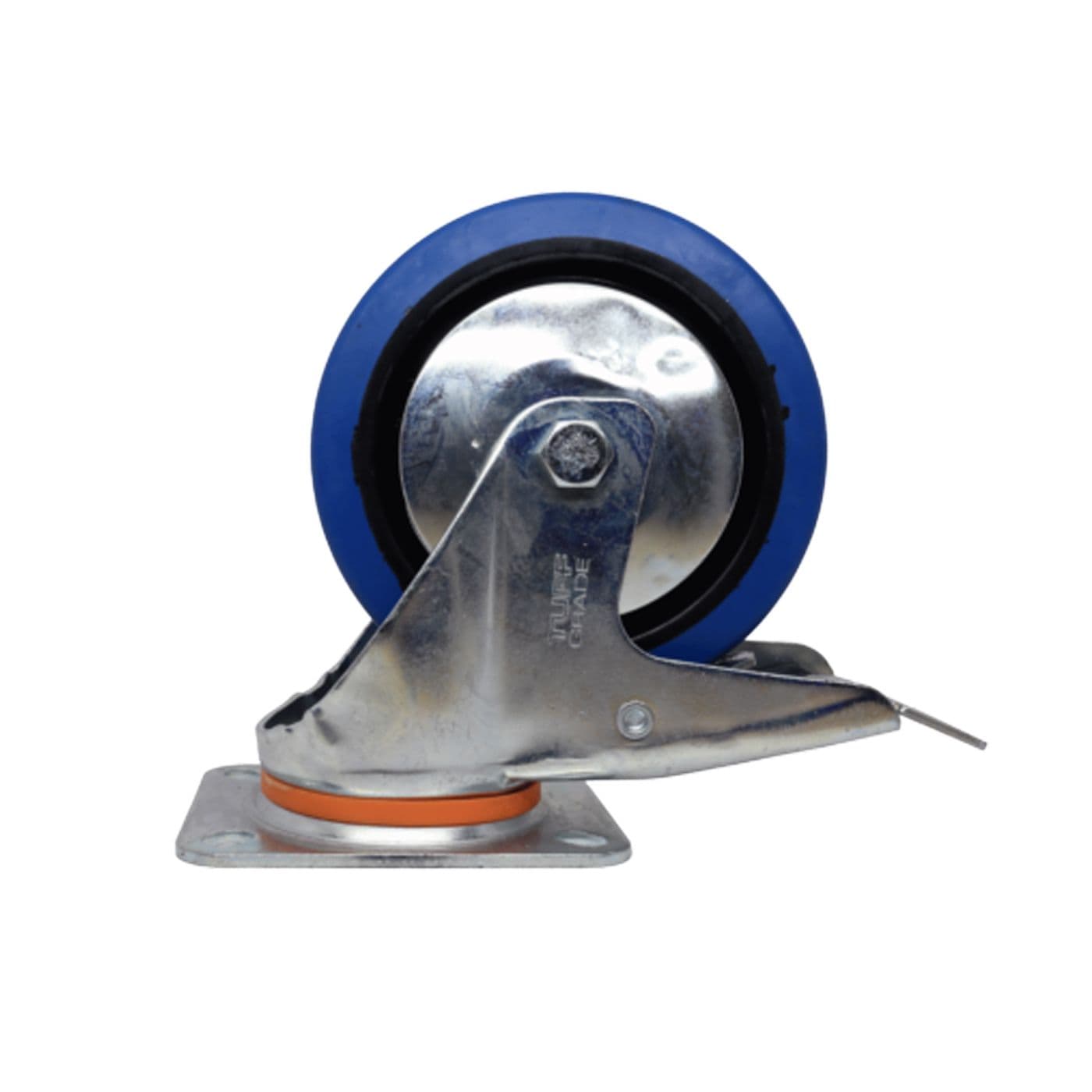 Roulette pivotante avec frein en acier et caoutchouc bleu, 4 po, 330 lb