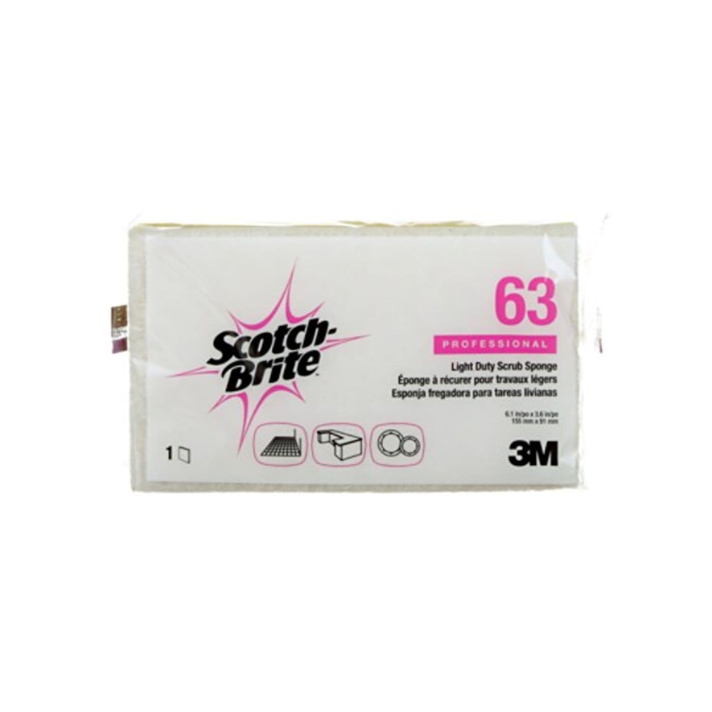 L’éponge à récurer pour travaux légers H-63 Scotch-BriteMC est une éponge/tampon qui n’égratignera pas et qui ne gâtera pas la plupart des surfaces. Normalement utilisé pour l’acier inoxydable, le verre, la céramique, la fine porcelaine de Chine, les comptoirs et les surfaces antiadhésives.