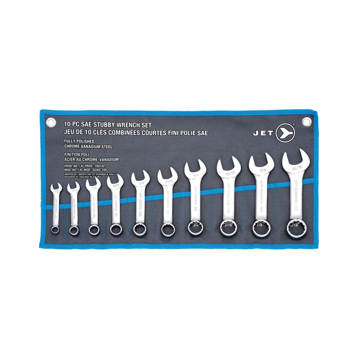 Ensemble de clés combinées trapues SAE polies, 10 pièces