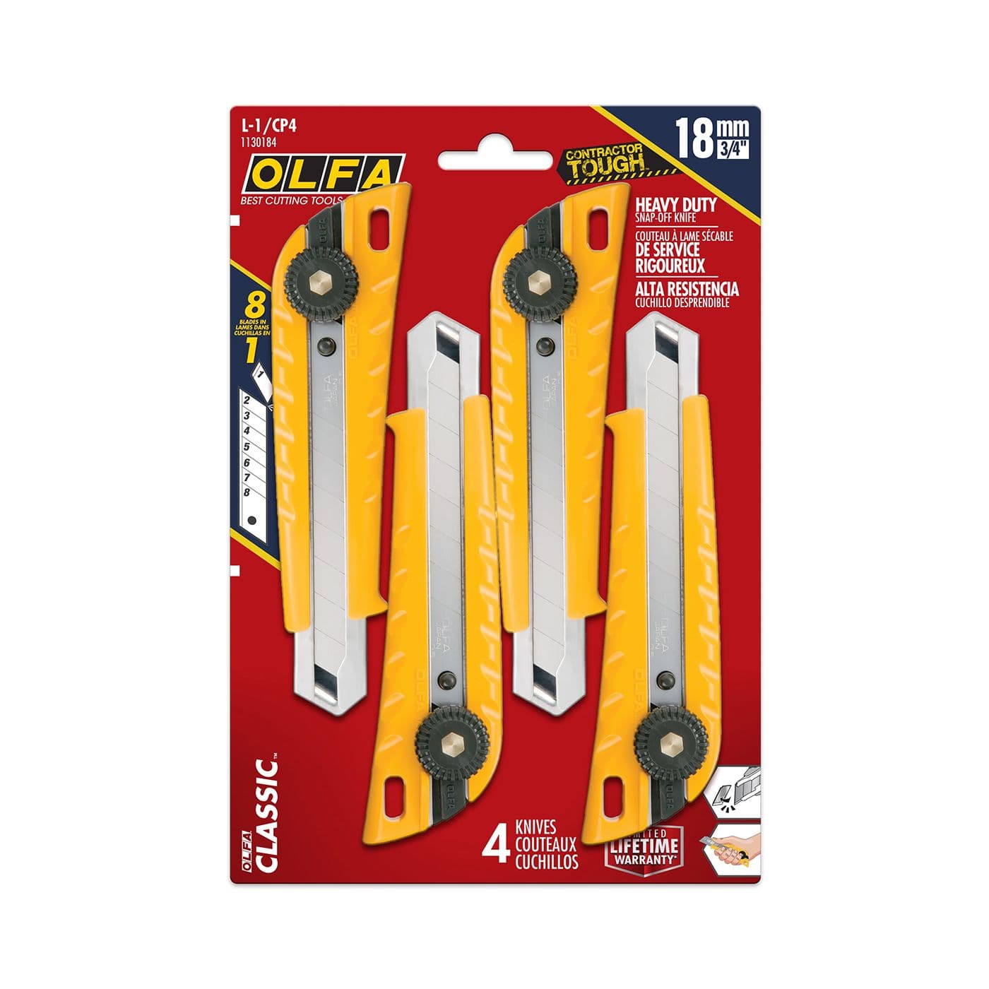 Couteau utilitaire classique à verrouillage à cliquet ultra-robuste, 18 mm, 4/pqt