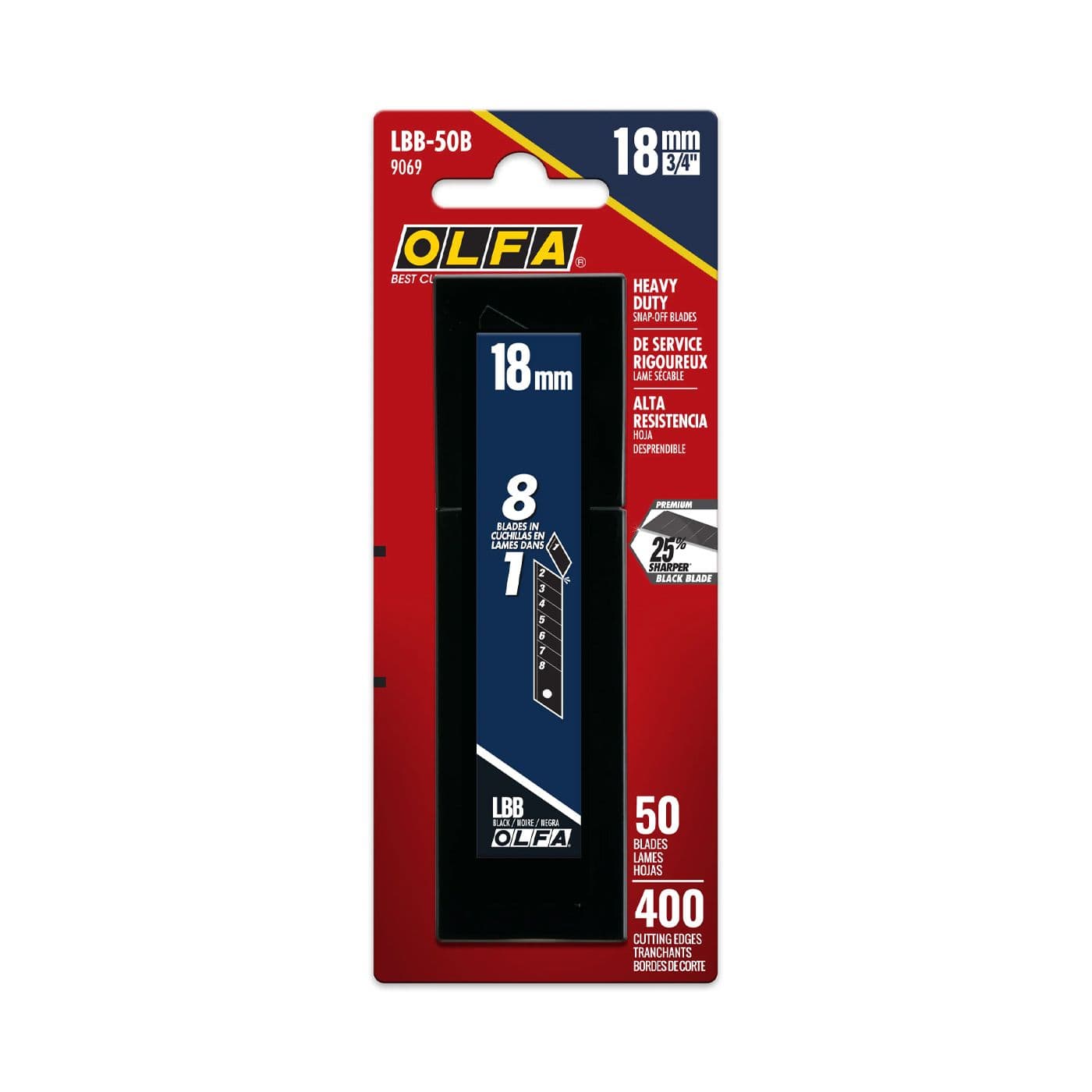 Les lames de 18 mm OLFA Heavy-Duty Ultra-Sharp Black Snap-Off sont la solution pour une coupe de précision. L’acier à outils japonais au carbone de première qualité assure la durabilité. Les lames noires à double tranchant sont jusqu’à 25 % plus tranchantes que les lames argentées standard. Chaque lame comporte huit (8) segments par lame pour des volumes de coupe précis. Chaque segment présente des rainures profondément gravées pour des coupes faciles et nettes. Lorsqu’un segment est émoussé, il suffit d’un simple coup sec pour retrouver un tranchant neuf. La taille universelle de 18 mm est compatible avec la plupart des manches de 18 mm.