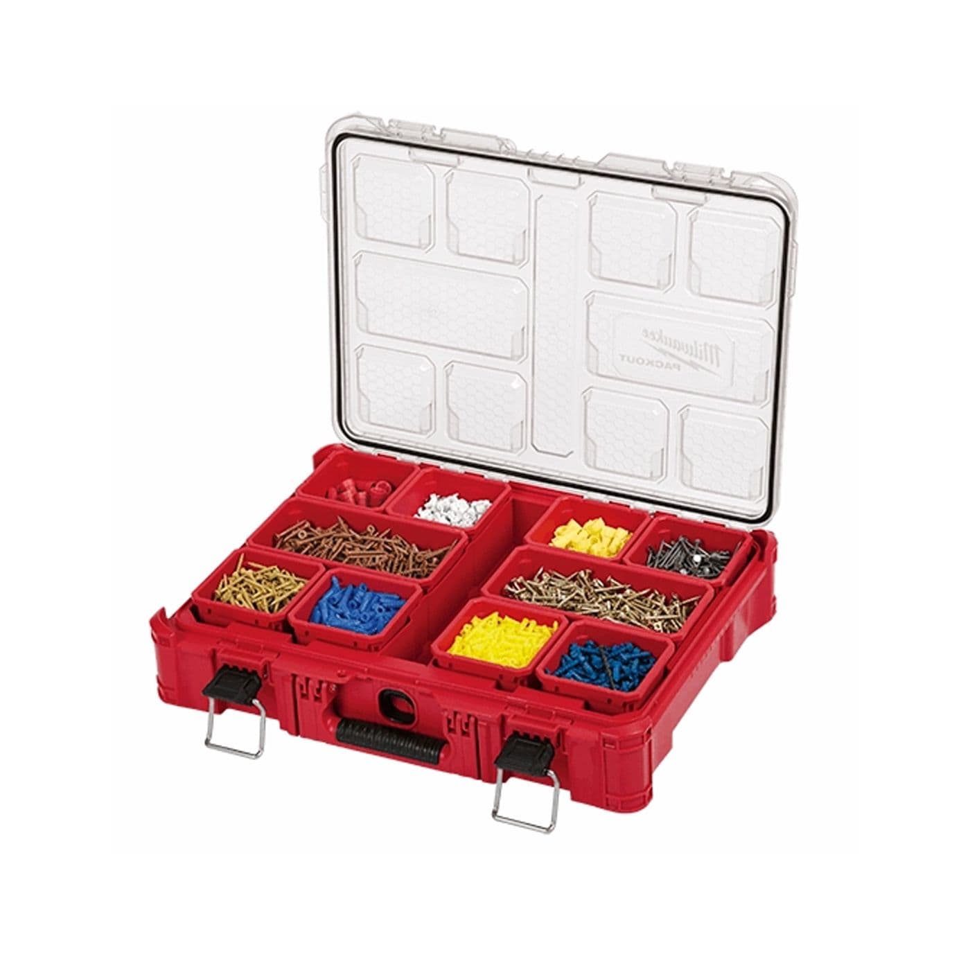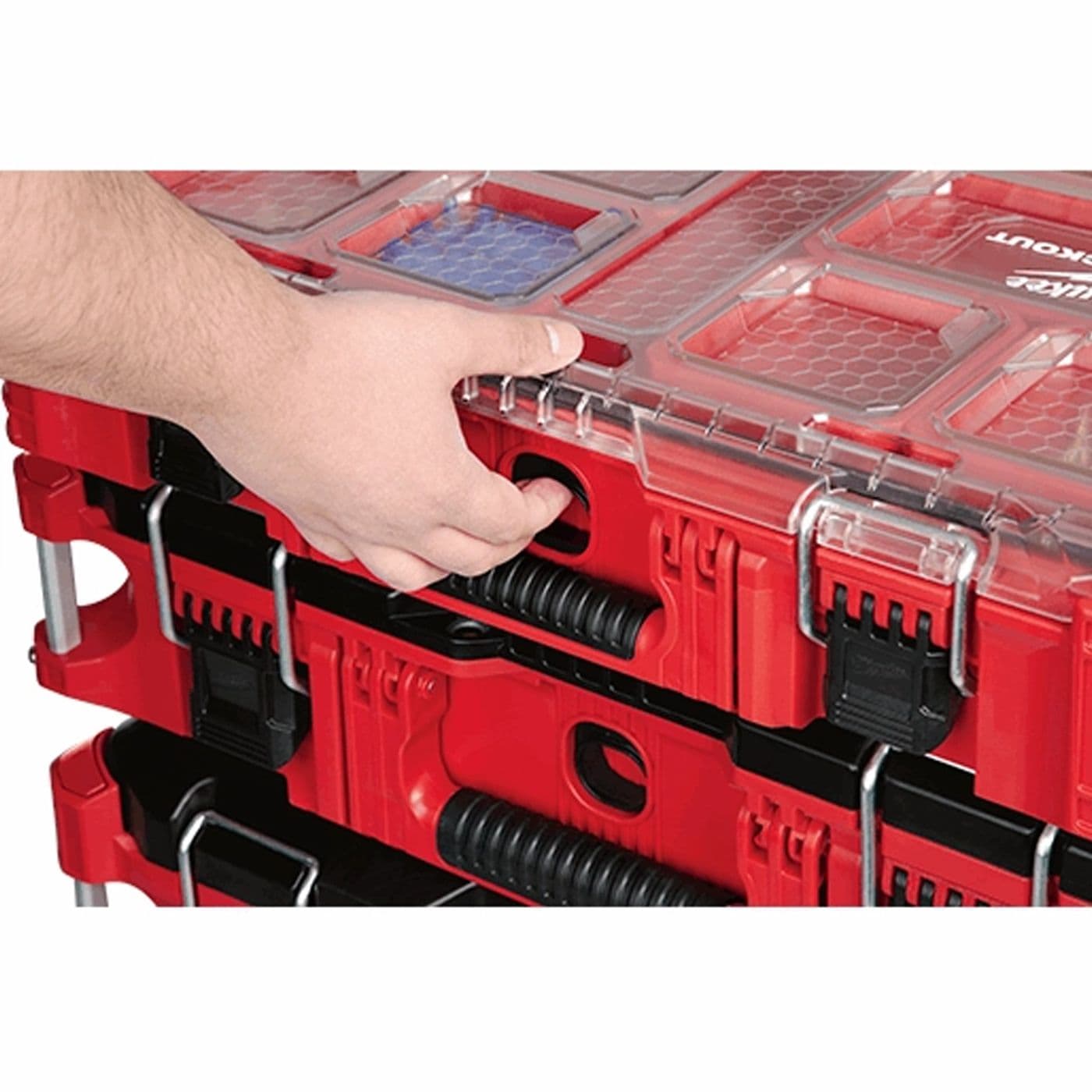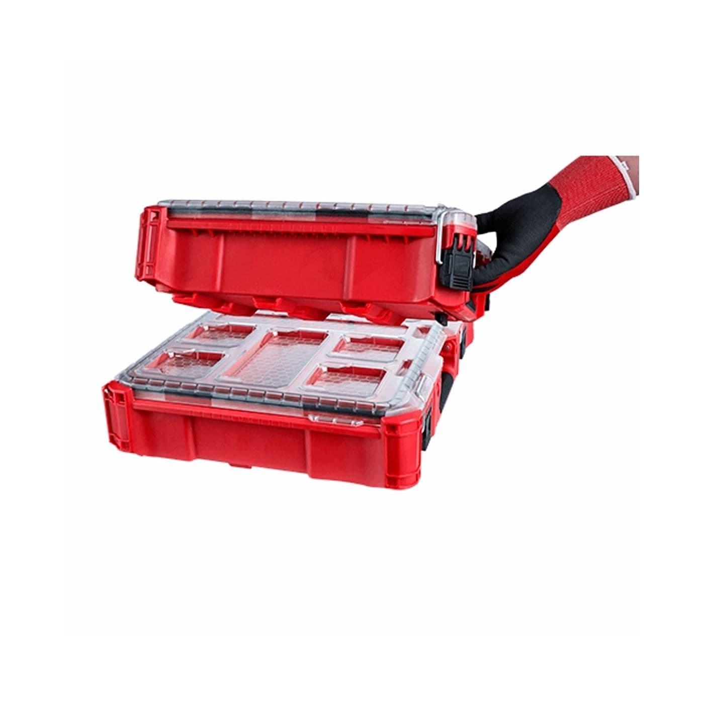 Notre système de rangement modulaire PACKOUTMD représente le système le plus robuste et le plus polyvalent de l’industrie. L’organisateur à profil bas PACKOUTMD est construit avec des matériaux résistants aux chocs afin qu’il puisse résister aux milieux rigoureux des chantiers. La cote IP65 protège vos outils et accessoires contre les intempéries, comme la pluie et d’autres débris de chantier. L’intérieur peu profond de l’organisateur comporte 10 compartiments de rangement avec des séparateurs amovibles. Le couvercle incolore de l’organisateur protège les compartiments afin de prévenir la migration et le mouvement du contenu pendant le transport. Des loquets à service intensif et des charnières renforcées garantissent que le contenu de l’organisateur demeure confiné et protégé. Notre système de rangement modulaire PACKOUTMD vous permet de personnaliser et de bâtir votre propre système de rangement pour le transport et l’organisation de vos outils et accessoires.