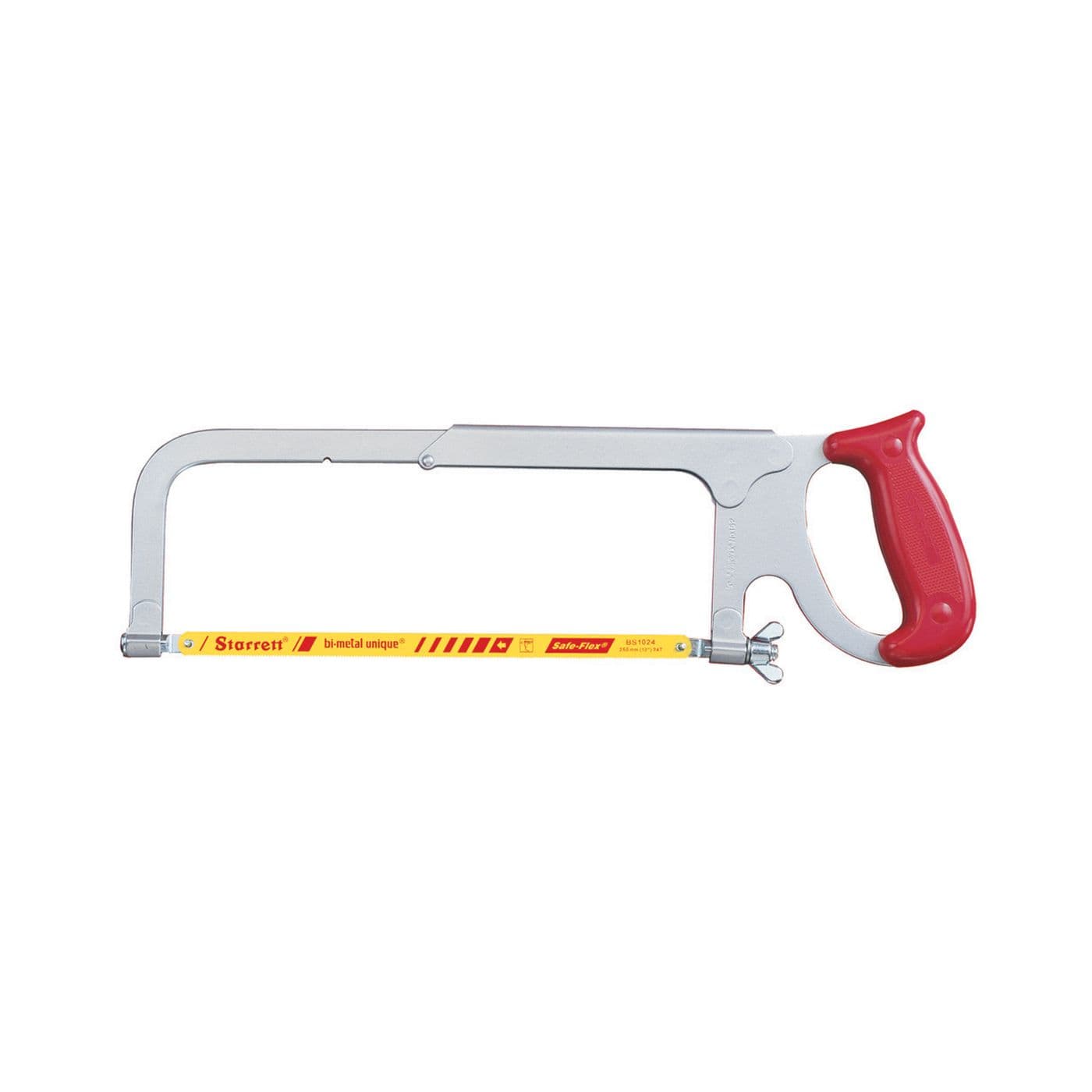 Le cadre de scie à métaux robuste et réglable Starrett K152 à poignée fermée est doté d’un cadre polyvalent et robuste pouvant accueillir des lames de 8, 10 et 12 pouces qui peuvent être montées dans l’une des quatre directions de coupe. Les lames peuvent être tendues à l’aide d’un seul écrou à oreilles.
