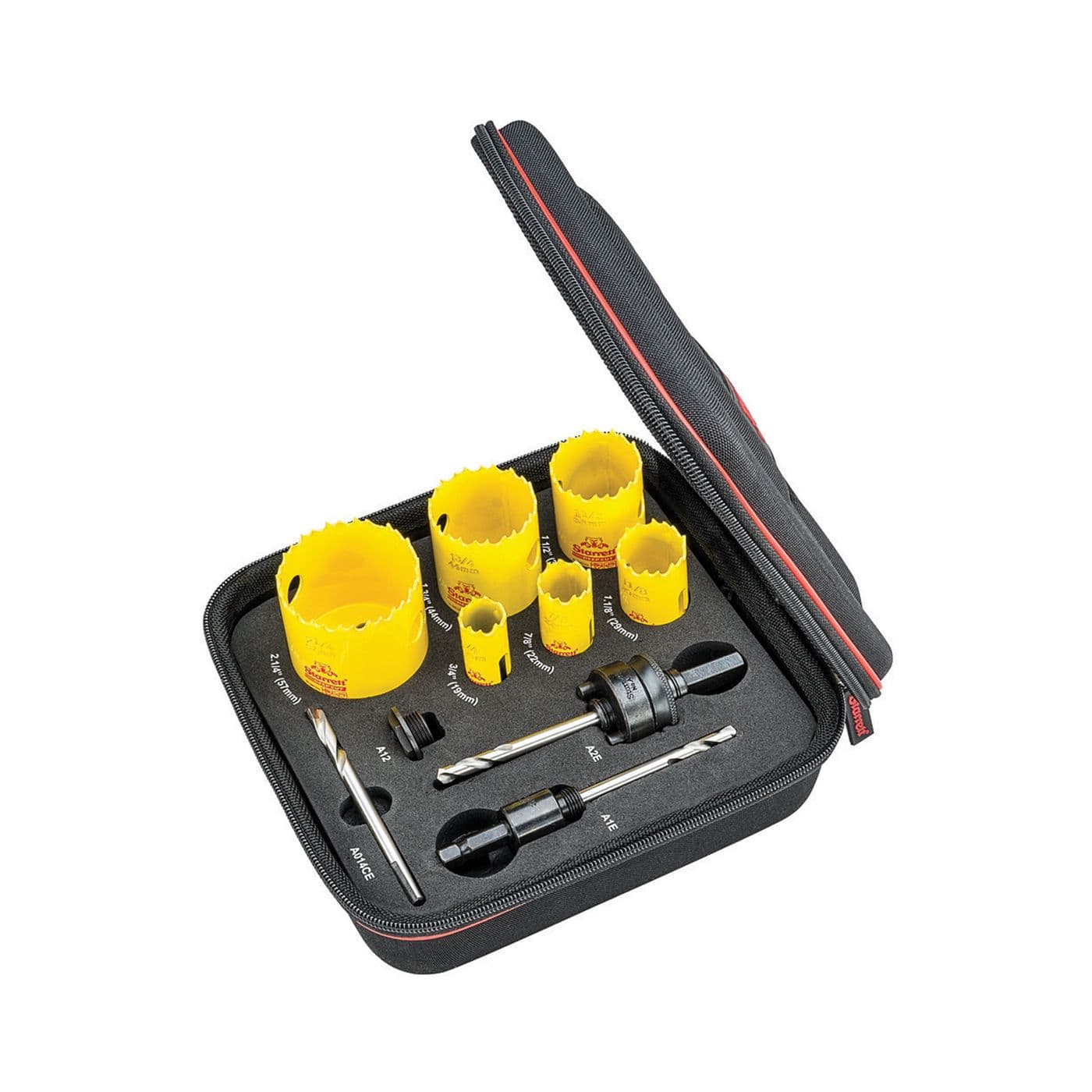 Le kit comprend six scies-cloches : 3/4 po (19,1 mm), 7/8 po (22,2 mm), 1-1/8 po (28,6 mm), 1-1/2 po (38,1 mm), 1-3/4 po (44,5 mm) et 2-1/4 po (57,2 mm).