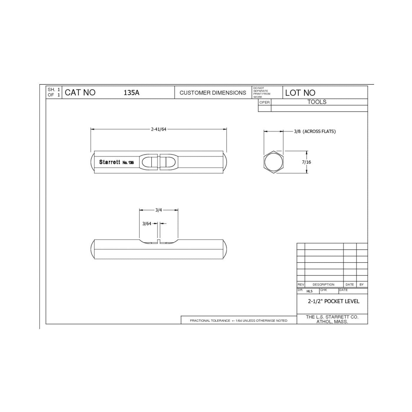 Le Starrett 135A est un autre niveau Starrett extrêmement utile qui se glisse facilement dans la poche et ne présente aucun bord tranchant. Longueur de 63 mm (2-1/2 po) avec fiole principale.