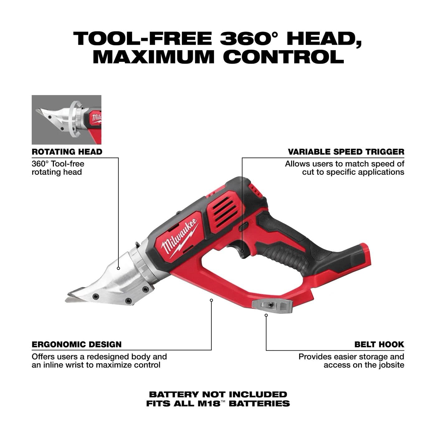 Cet ensemble de cisailles à double coupe M18MC pour calibre 18 est doté d’un corps redessiné et d’un poignet intégré qui optimise le contrôle pendant l’utilisation. Ces cisailles offrent une capacité de coupe de l’acier de calibre 18, ce qui vous évite d’avoir recours à des cisailles à main et vous permet d’accomplir plus de travail en moins de temps. Les cisailles à double coupe M18MC pour calibre 18 sont optimisées pour effectuer des coupes droites avec un minimum de distorsion. Ces cisailles sans fil pour la découpe de métaux sont dotées d’une tête rotative à 360° et d’une gâchette à vitesse variable qui vous offrent un contrôle maximal. En plus de l’outil, cet ensemble comprend (2) batteries M18MC REDLITHIUMMC XC3.0, (1) chargeur multivoltage M18MC et M12MC et un sac de transport.