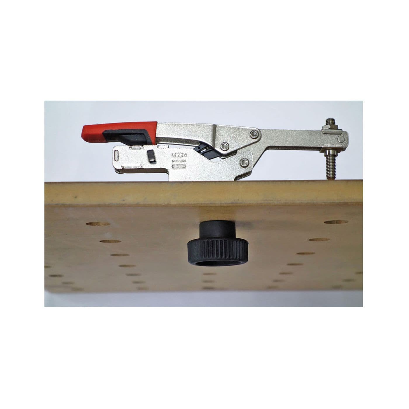 Cet adaptateur pratique vous permet d’utiliser les 4 meilleurs modèles de serre-joints articulés à réglage automatique de Bessey avec des tables de travail matricielles de 20 mm. Cet adaptateur peut être utilisé avec les versions actuelles des serre-joints STC-HH50, STC-HH70, STC-IHH25 et STC-VH50. La série des serre-joints articulés à réglage automatique de BESSEY représente une innovation significative sur le marché des serre-joints articulés. Tout d’abord, la force de serrage peut être ajustée dans une plage de 25 à 550 lb de pression en tournant une vis de pression intégrée. Deuxièmement, le serre-joints s’ajustera automatiquement à différentes hauteurs sur la pièce de travail sans changement significatif de la force de serrage appliquée. Troisièmement, la capacité de maintien de 700 lb de ces serre-joints articulés BESSEY est très élevée. Les serre-joints à bascule BESSEY peuvent remplacer une vaste gamme de serre-joints concurrents lorsque différentes pressions et capacités de serrage sont requises. Cela signifie des inventaires d’outils réduits et un temps de configuration rapide. Les serre-joints sont également reconnus pour être plus sûrs pour les applications du monde réel où les variations de hauteur de la pièce à travailler peuvent conduire à appliquer une force de serrage trop élevée ou trop faible (avec les risques à la sécurité qui peuvent en résulter). BESSEY. Simply better.