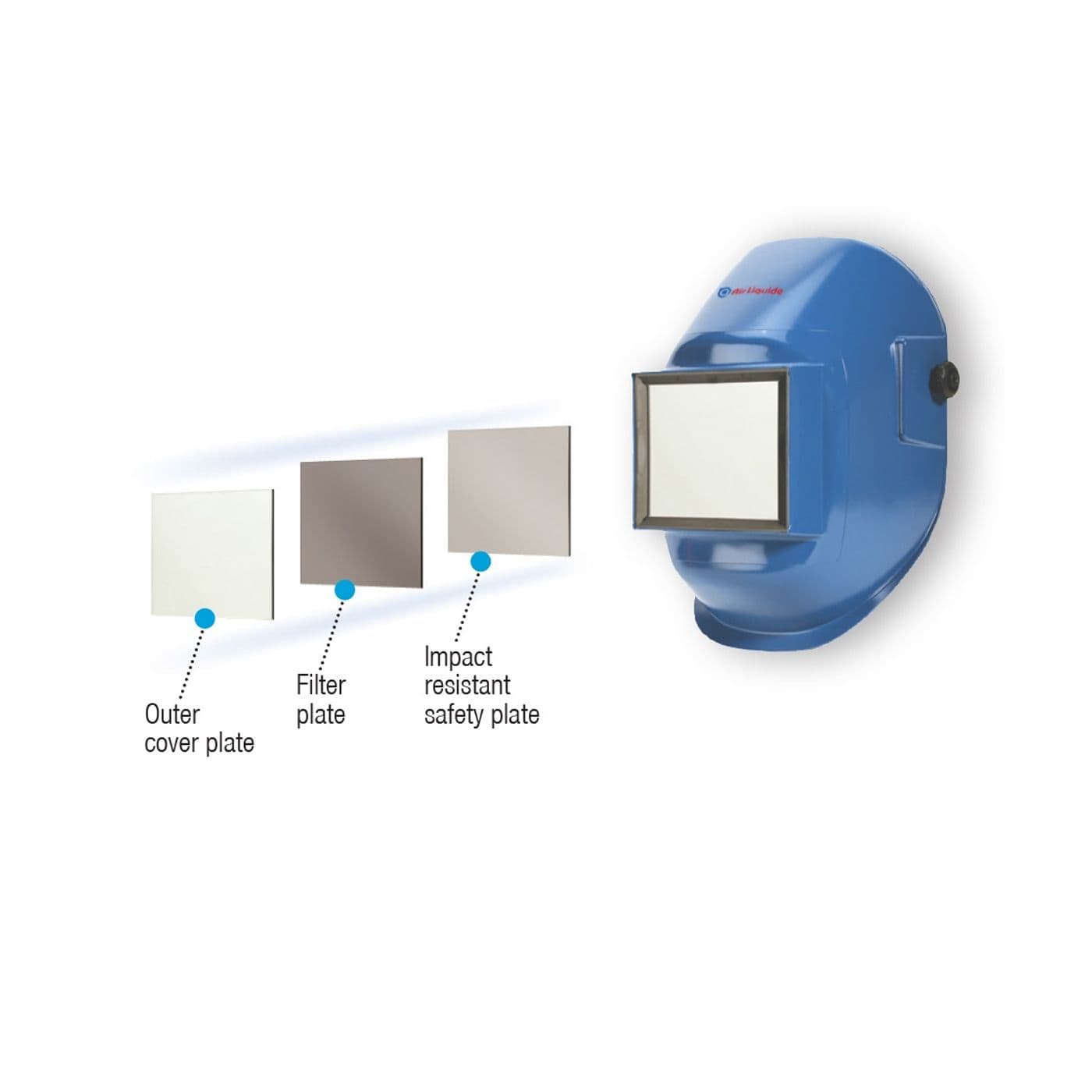 Toujours utiliser une plaque de recouvrement pour protéger le filtre en verre contre les éclaboussures de soudage, les piqûres et les rayures. Les plaques de sécurité antichoc doivent être arrimées au cadre intérieur des masques et des lunettes de sécurité, à proximité des yeux, afin d’offrir une protection contre les projections de particules volantes quand la visière est relevée.
