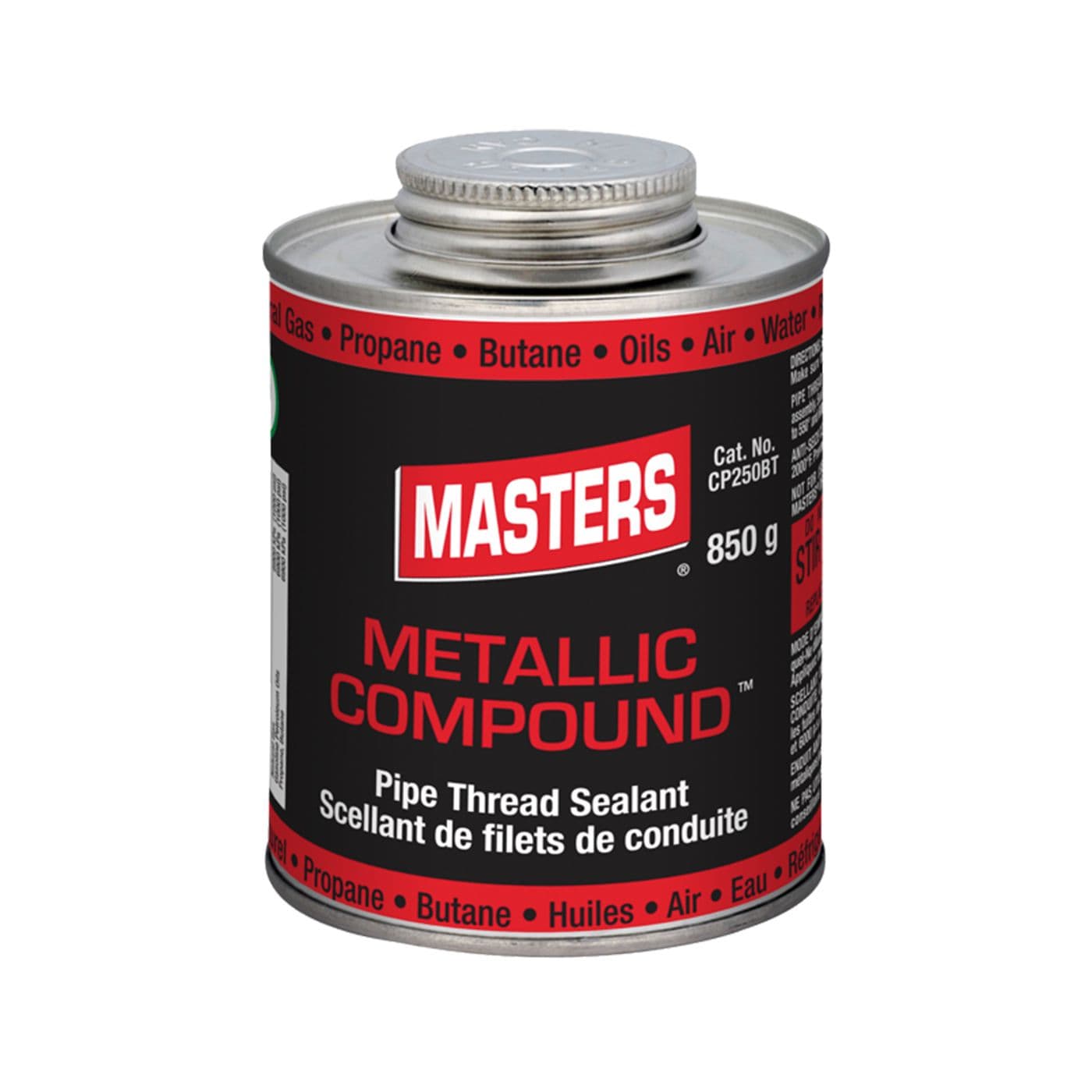 MastersMD Metallic CompoundMC est un produit d’étanchéité pour filetage de tuyaux très résistant et de qualité éprouvée, à utiliser sur les raccords filetés en métal et en plastique. Ce produit tout temps lubrifie pendant l’assemblage, ne durcit jamais et peut être facilement démonté même après des années de service.