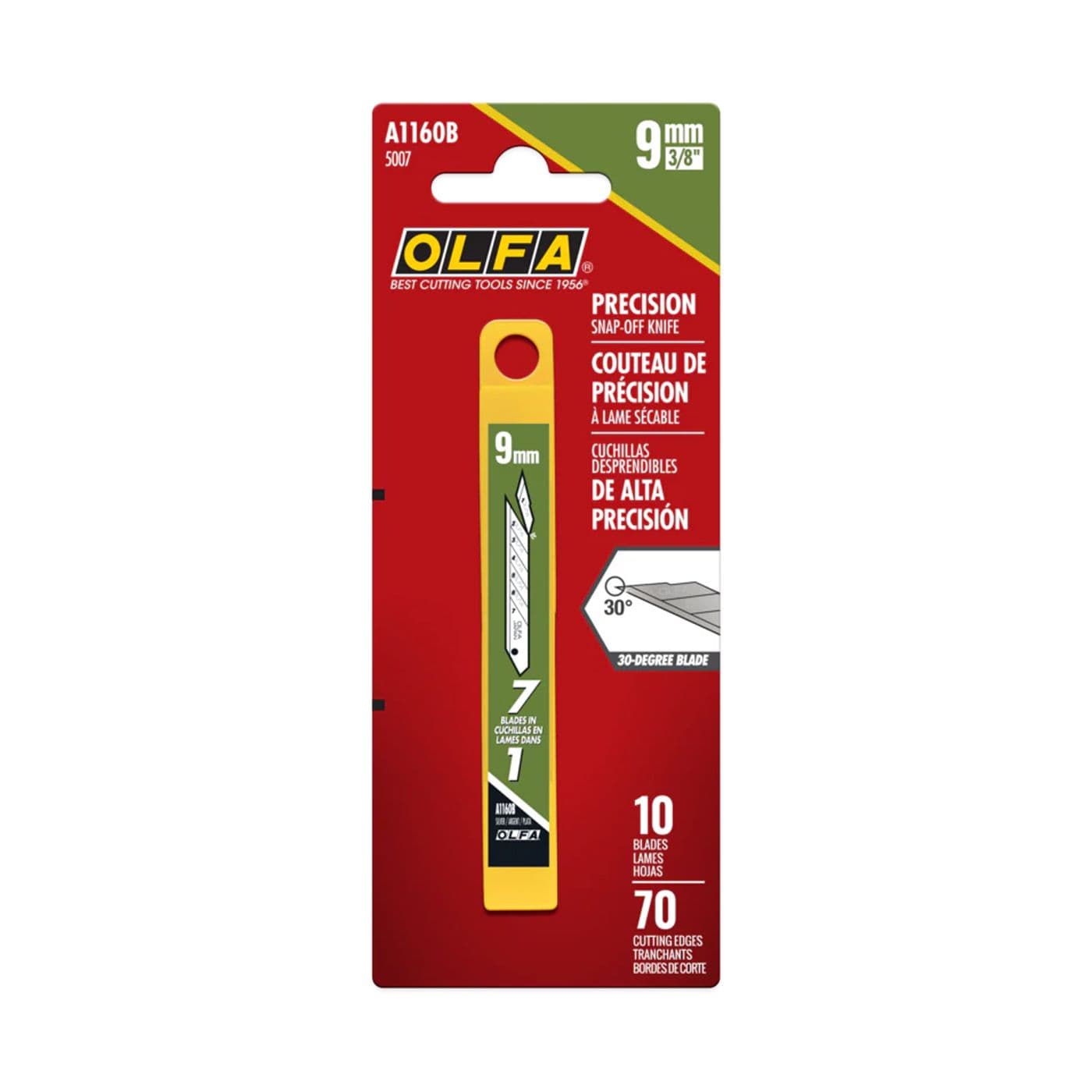 Lames de précision de rechange A1160B pour manche OLFA SAC-1, 9 mm, 10/pqt