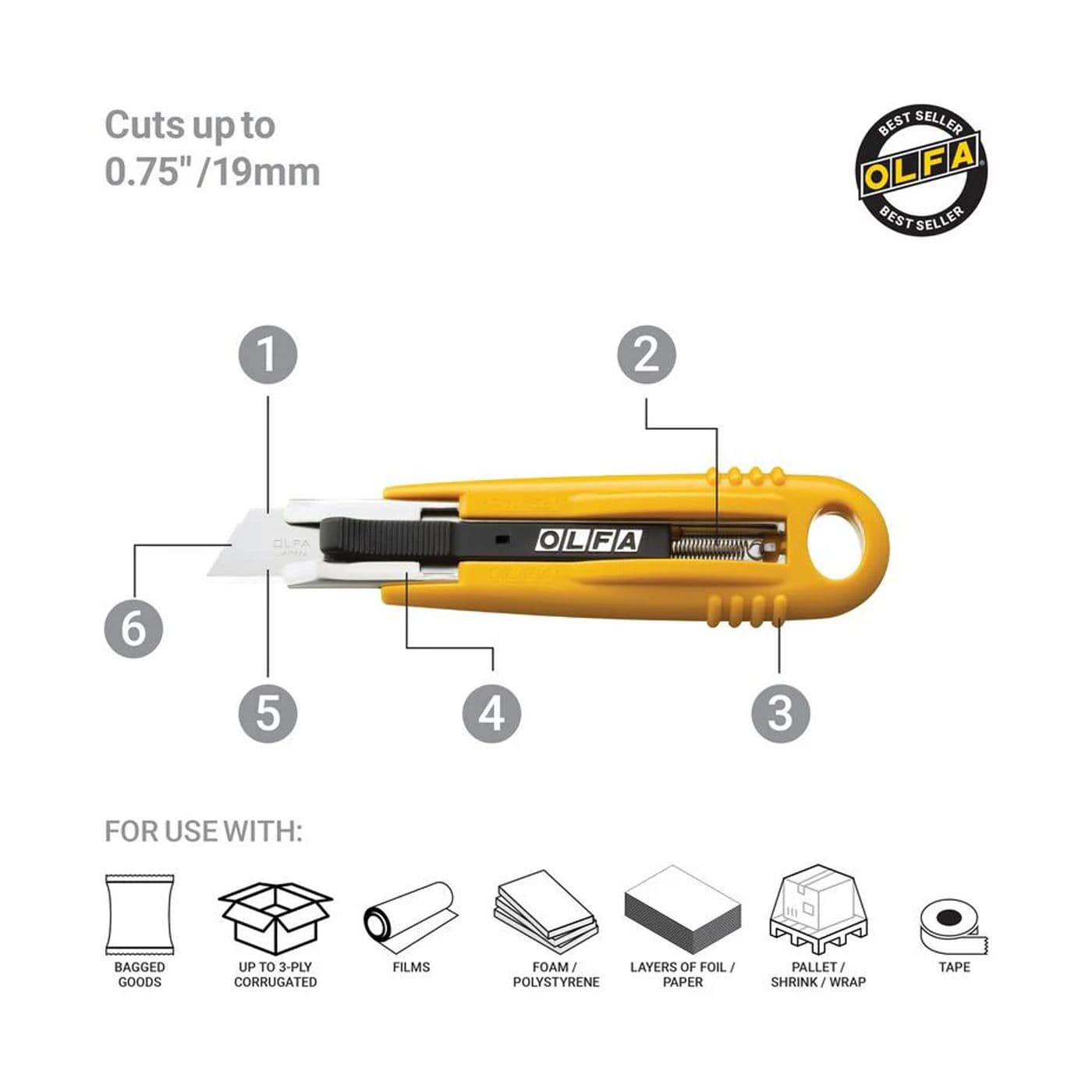 Couteau de sécurité autorétractant semi-automatique, 17,5 mm, 5-1/2 po long.