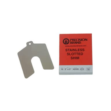 Cales fendues en acier inoxydable, taille C, 4 po x 4 po x 0,050 po, fente de 1-1/4 po