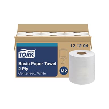 Lingette papier basic à dévidage central blanc M2 2 plis, 600 feuilles, 9 x 11,8 po