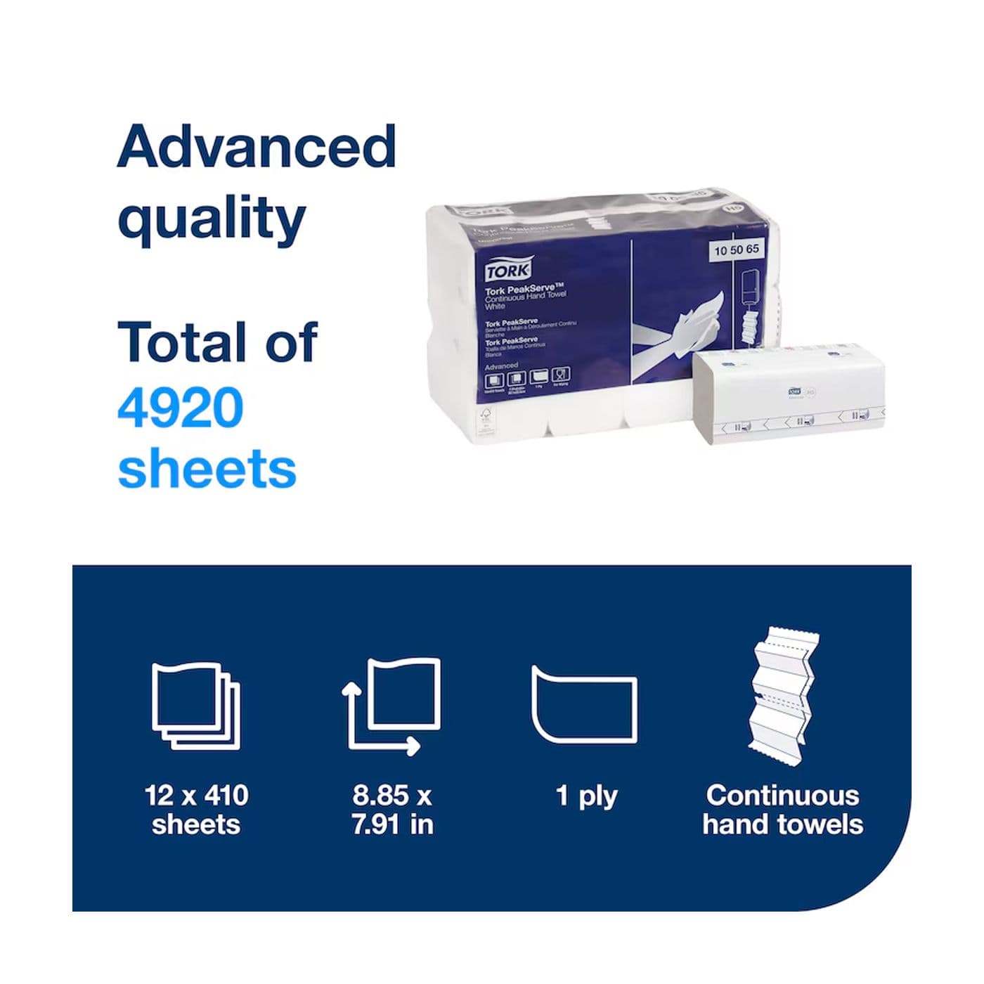 Papier essuie-mains continu H5 Tork PeakServeMC blanc 1 pli, 410 feuilles, 8,85 po x 7,91 po