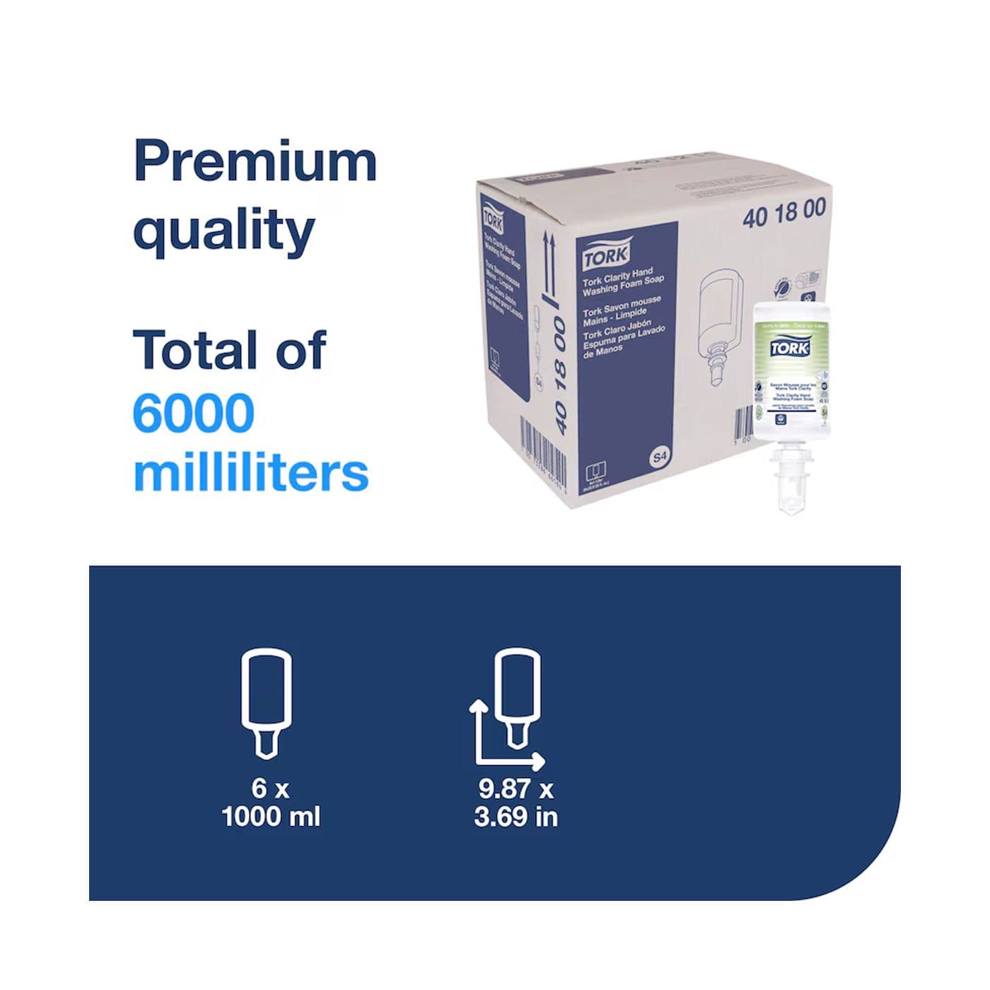 Composé à 99 % d’ingrédients d’origine naturelle, le savon mousse pour le lavage des mains Tork Clarity est conçu pour soutenir les objectifs de développement durable. Cette formule a un impact moindre sur la vie aquatique et n’agresse pas la peau. Le savon mousse pour le lavage des mains Tork Clarity est compatible avec les distributeurs automatiques et manuels de soin de la peau Tork. La bouteille hermétique aide à réduire les risques de contamination croisée. La bouteille se compresse au fur et à mesure que son contenu est utilisé pour réduire les volumes de déchets.