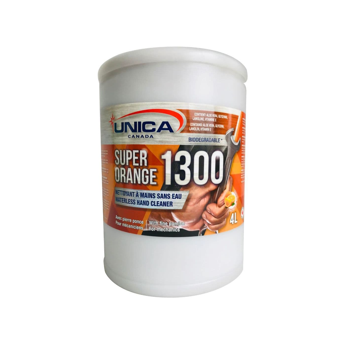 Nettoyant à mains en lotion blanche avec abrasif pierre ponce, à base de solvant d’agrumes, pouvant être employé avec ou sans eau. Il déloge rapidement et naturellement les taches les plus tenaces telles que : rouille, graisse, peinture, goudron, uréthane, charbon, vernis, gomme d’épinette, mastic, carbone, résine, ciment, adhésifs, encre d’imprimerie. Il est très efficace aussi pour les taches sur les vêtements et cuirette d’autos. Sa formule unique combine le pouvoir nettoyant exceptionnel de l’huile d’orange avec les effets récurant de la pierre ponce.