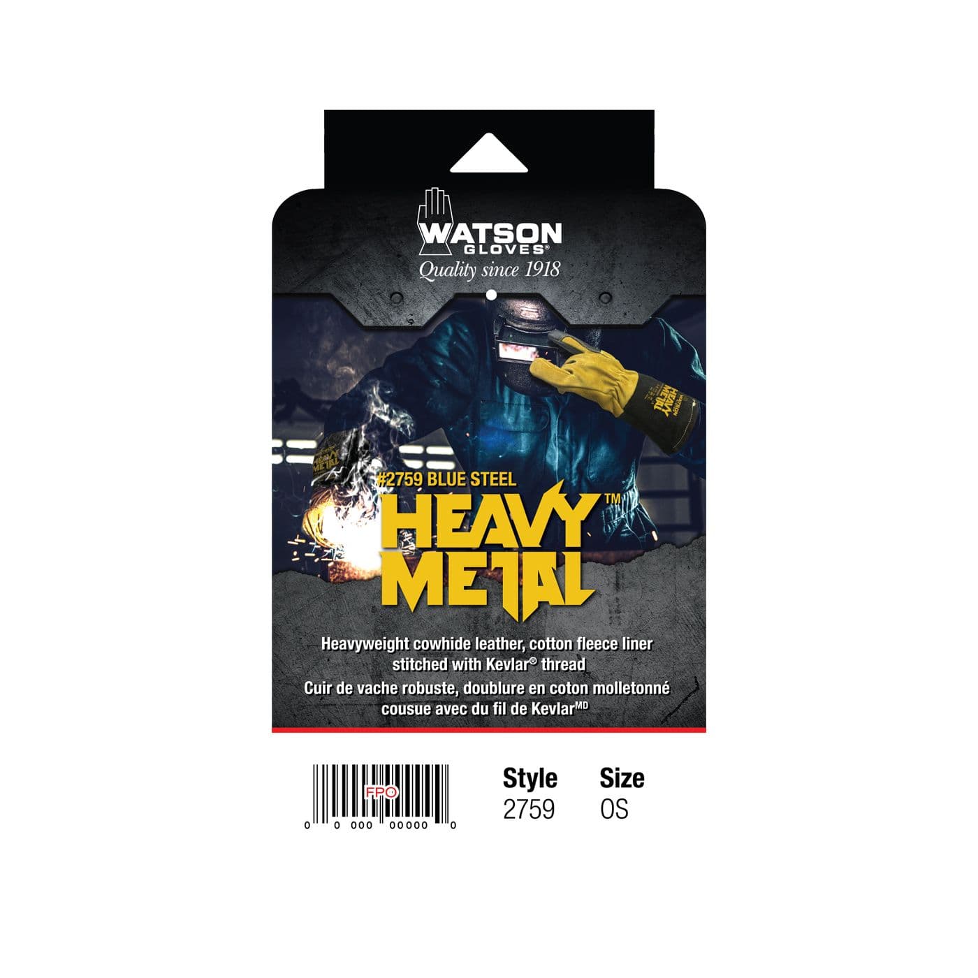 Gants de soudage, cuir de vache refendu, doublure en coton, taille unique