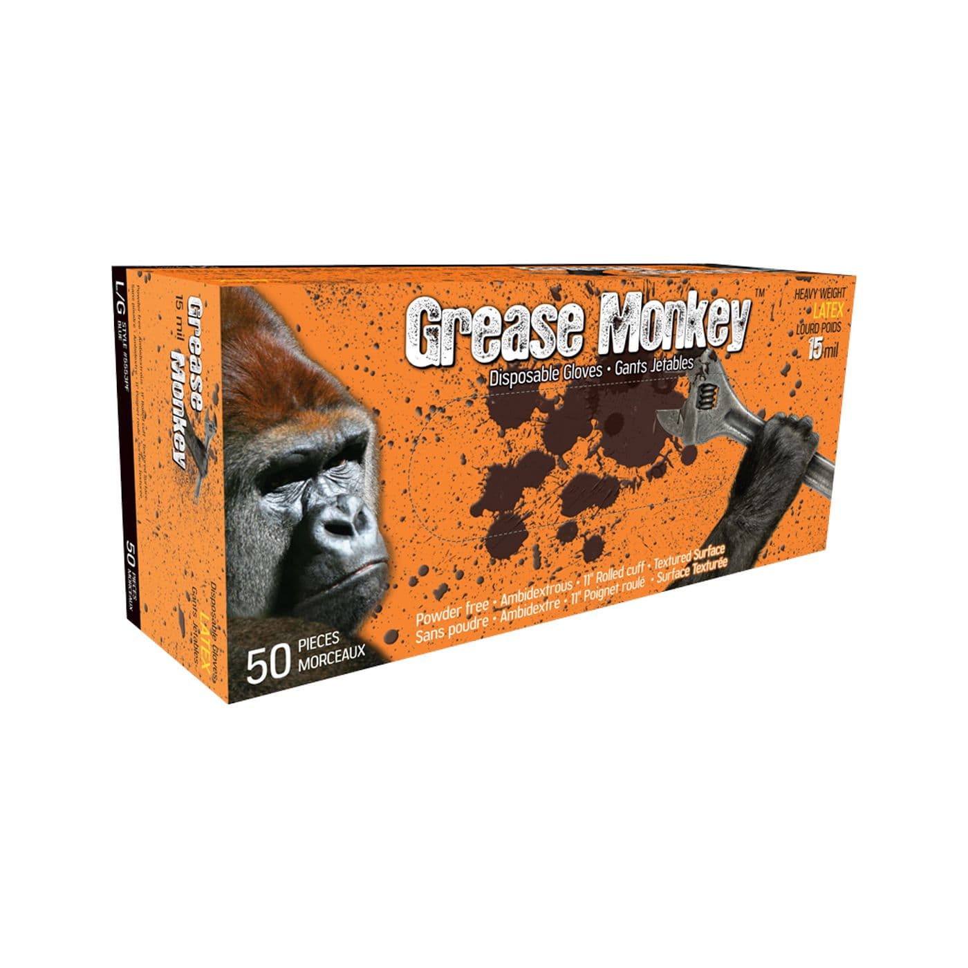 Gants jetables Grease MonkeyMD, latex 15 mils, sans poudre, entièrement texturés, taille TTG